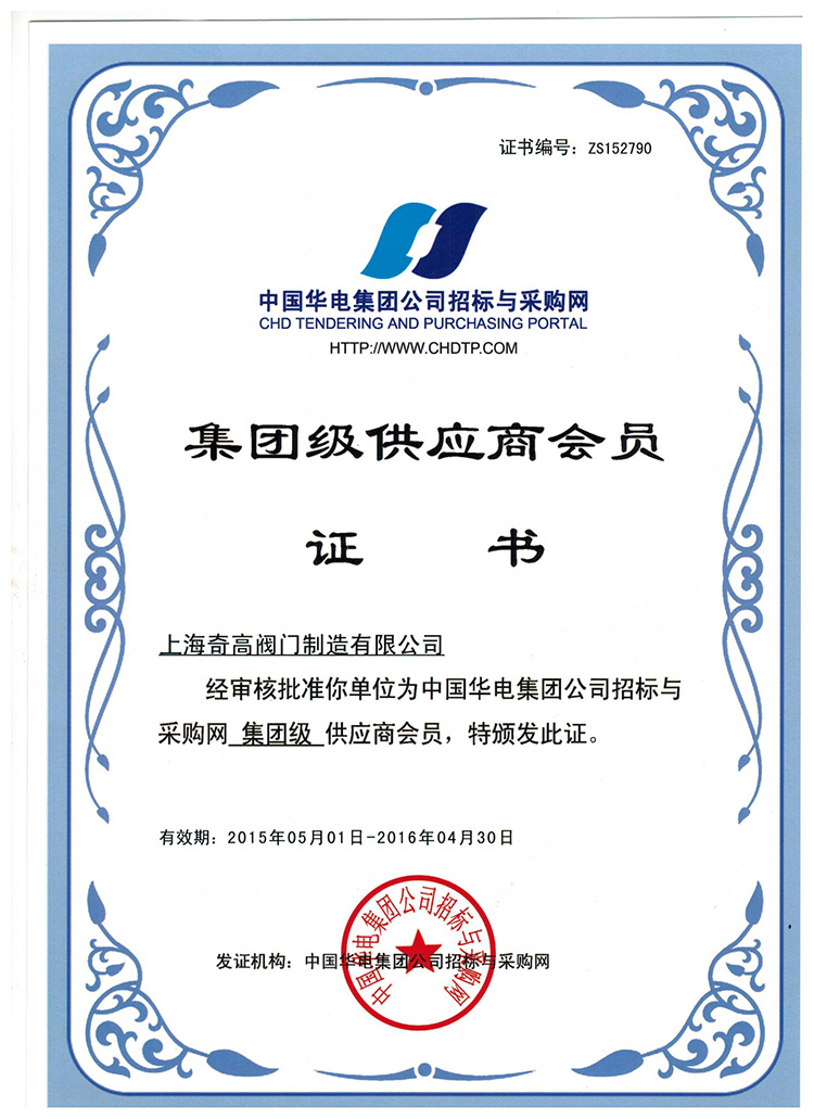 2015-05-11 Number of attention:On May 1, 2015, Shanghai Qigao Valve Manufacturing Co., Ltd. (http://m.hmchk.cn) obtained the group-level supplier certificate of China Huadian Group's bidding and purchasing network with excellent qualifications after a rigorous examination of the bidding and purchasing network of China Huadian Group. Congratulations. "Src =" http://m.hmchk.cn) After a rigorous review of the bidding and procurement network of China Huadian Group Corporation, Huadian Group has obtained the group-level supplier membership certificate of the bidding and procurement network of China Huadian Group Company with excellent qualifications. Congratulations. "> m.hmchk.cn) After a rigorous review of the bidding and procurement network of China Huadian Group Corporation, the group-level supplier certificate of the bidding and procurement network of China Huadian Group Corporation was obtained with excellent qualifications. Congratulations.