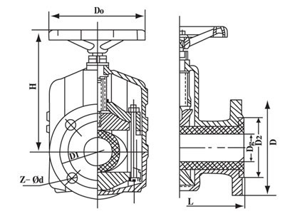 當(dāng)順轉(zhuǎn)手輪時(shí),使大小閥桿同時(shí)帶動(dòng)上下閘板,壓縮管套,進(jìn)行關(guān)閉,反轉(zhuǎn)即行開(kāi)啟,這樣,閘板在導(dǎo)柱之間上下往復(fù)完成閥門(mén)開(kāi)閉工作。另外,因橡膠管套承力,因此在開(kāi)關(guān)時(shí),操作人員旋轉(zhuǎn)手輪時(shí)只要感到適量抵觸,均己達(dá)到開(kāi)閉點(diǎn), 切勿盡力或多人輔助,禁用其他工具開(kāi)閉。